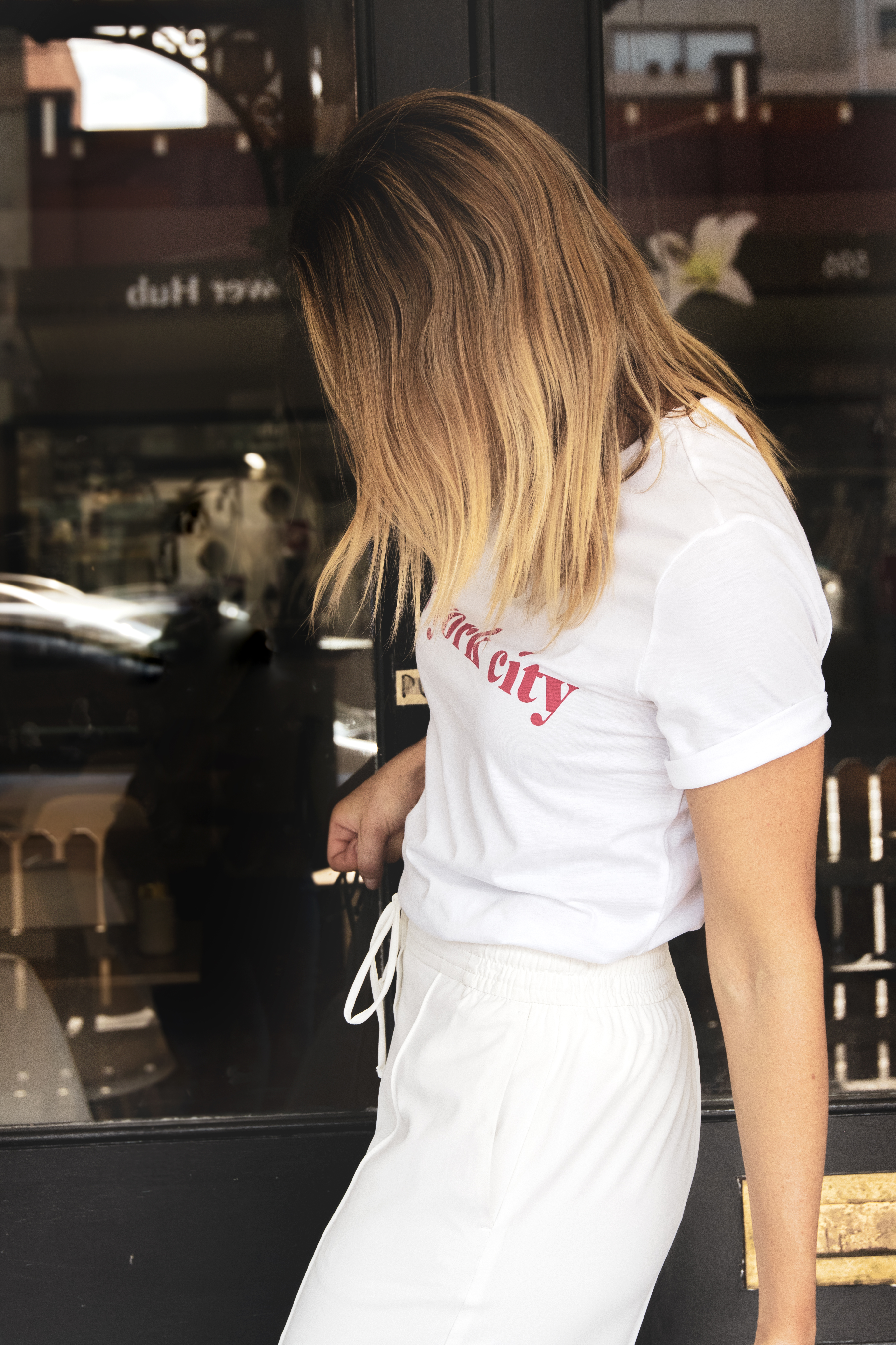 Look 1. Mr K and I love a good movie night, and even better heading to our local cinema which serves wine… bonus. So a casual all white look is what I love about this one. Keeping it clean and wearing white on white is perfect for summer, and let’s face it I can’t wear white around my boys, so it’s the only chance I get. Wide leg pants are not only in this season but so comfy. Wide Leg Pants ($56) Wearing it with the New York City tee ($13)
